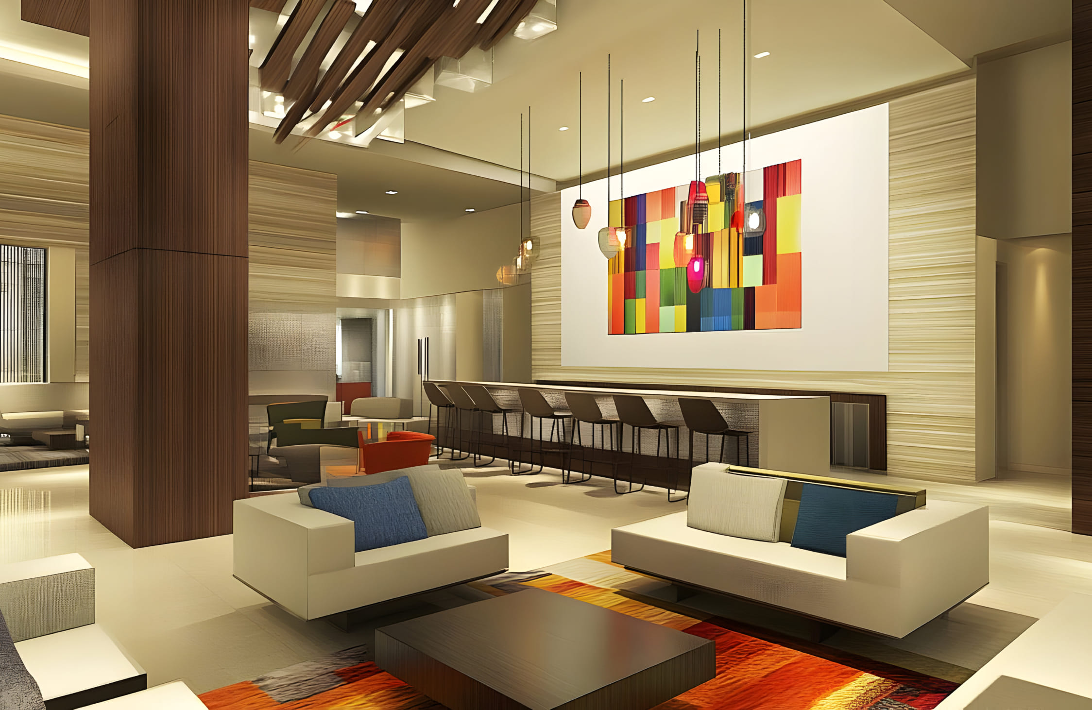 This approach enhances spatial clarity, improves movement flow, and strengthens the relationship between interior environments and overall building architecture. The result is a balanced and well-integrated space that feels intentional and structurally cohesive.