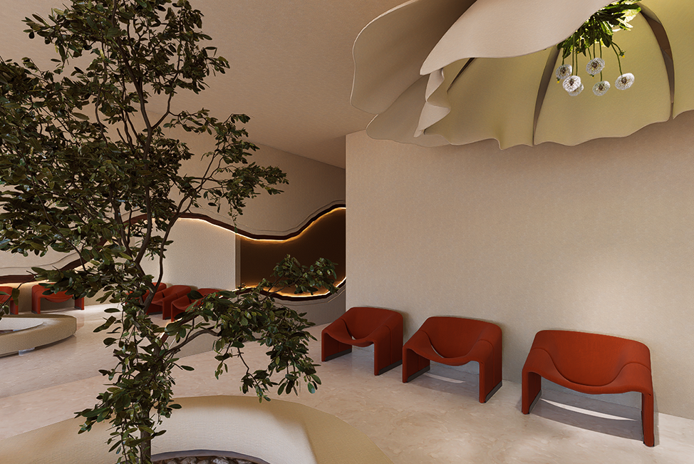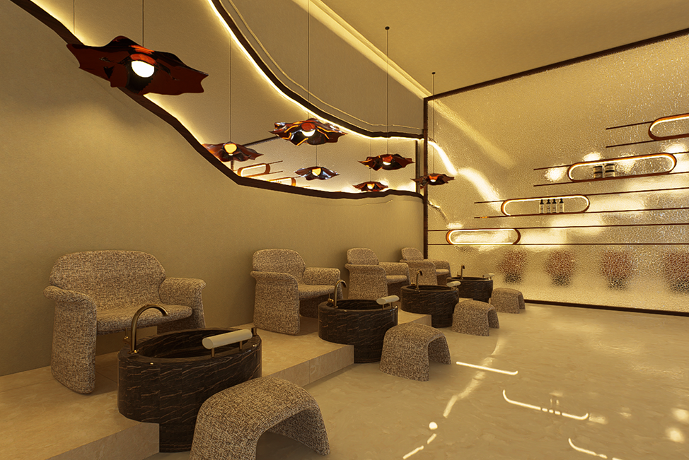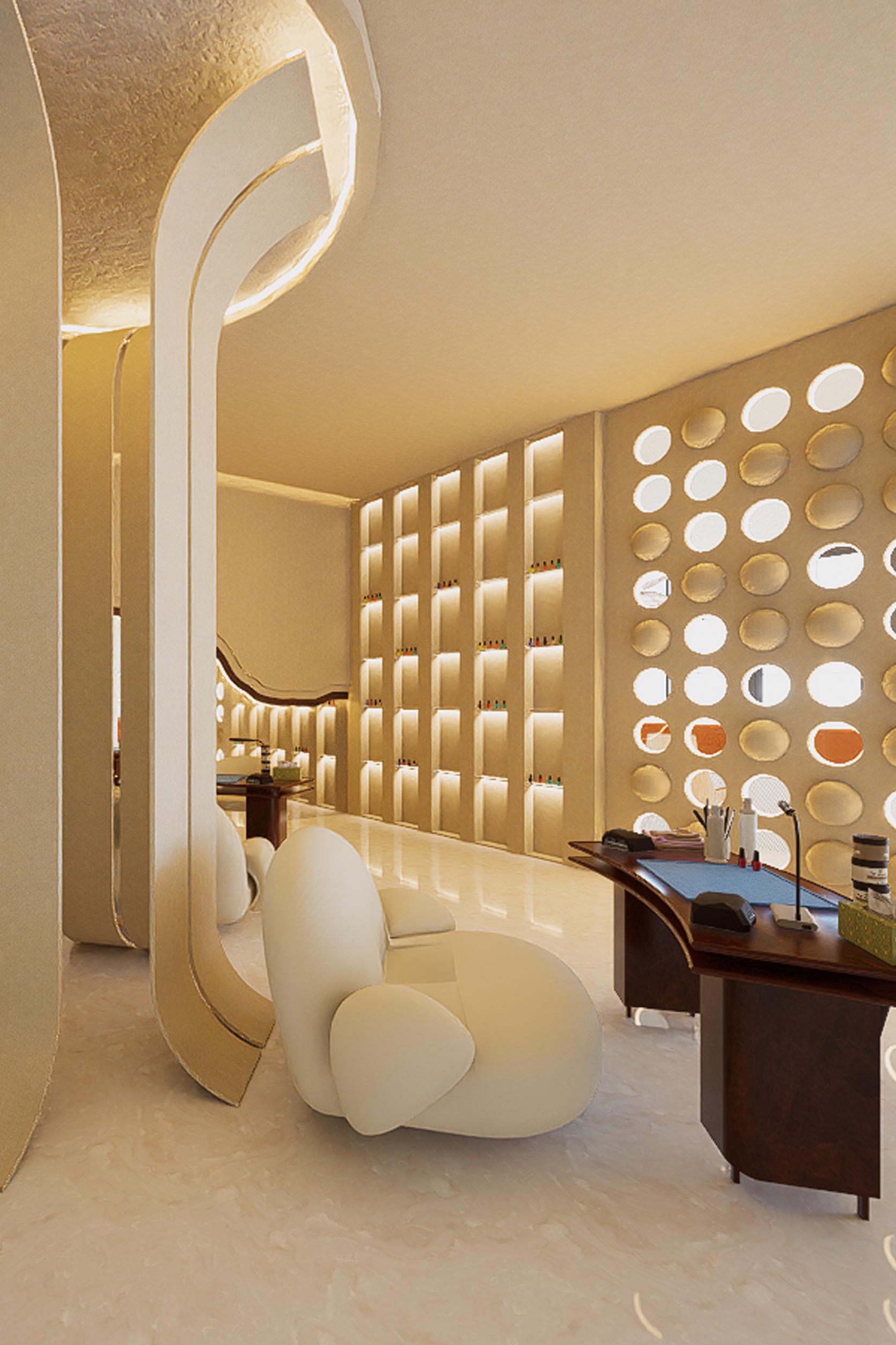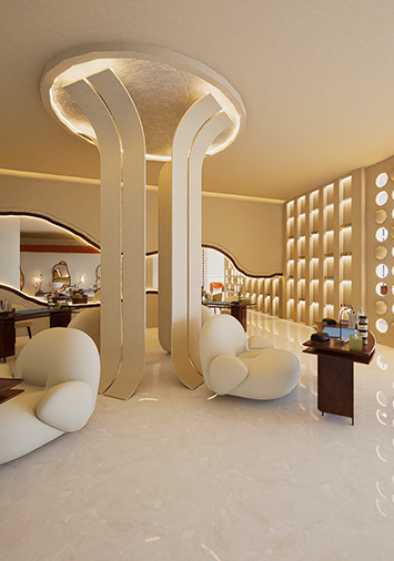 Inspired by organic forms and fluid lines, the design creates a calm yet dynamic space that reflects beauty, flow, and renewal.