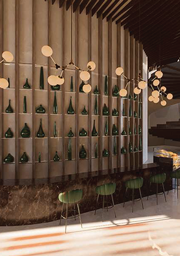 The Green Amber is a refined fine-dining experience inspired by nature’s warmth and organic elegance. Designed to balance sophistication with comfort, the space embraces rich green tones, sculptural lighting, and layered natural materials to create an inviting yet luxurious atmosphere.